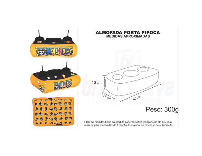Referência ALMPIP Dimensões 40cm x 13cm x 27cm Tipo de Impressão Sublimação Material Isoflex. Enchimento: fibra siliconada Embalagem Individual, Polietileno