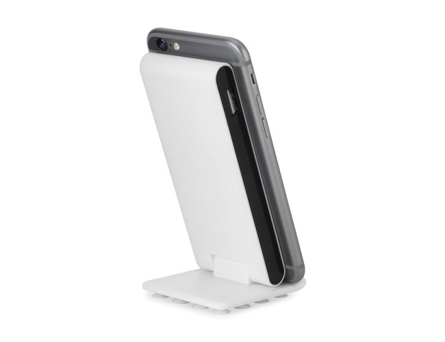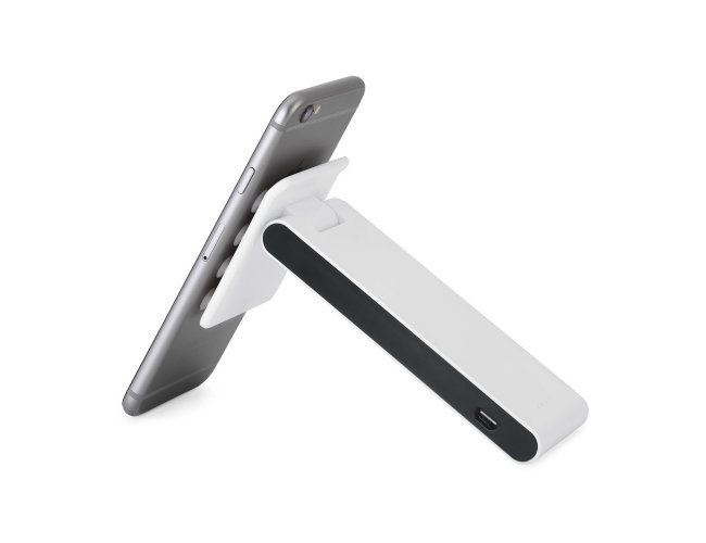 Bateria portátil em ABS com ventosas na base. Bateria de lítio com capacidade de 4.000 mAh, tempo de vida ≥ 500 ciclos e com entrada/saída 5V/1A. Incluso cabo USB / micro USB para carregar a bateria. Bateria: 123 x 50 x 14 mm | Base: 65 x 58 x 10 mm.