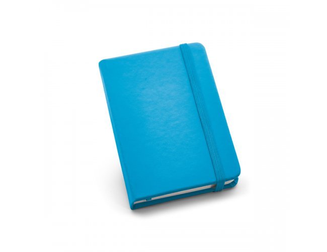 Caderno de bolso com 80 folhas não pautadas, capa dura em c. sintético, fita separadora e elástico. 90 x 140 mm