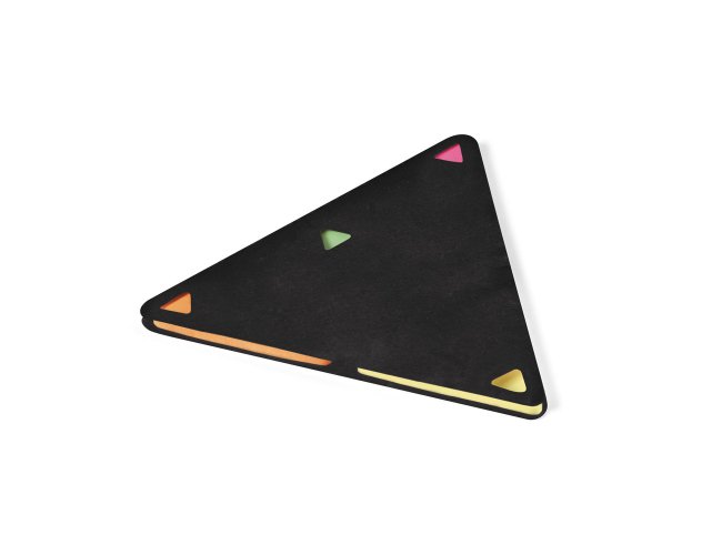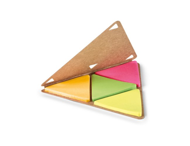 4 blocos adesivados triangular com 25 folhas cada e com capa em cartão. 91 x 91 mm