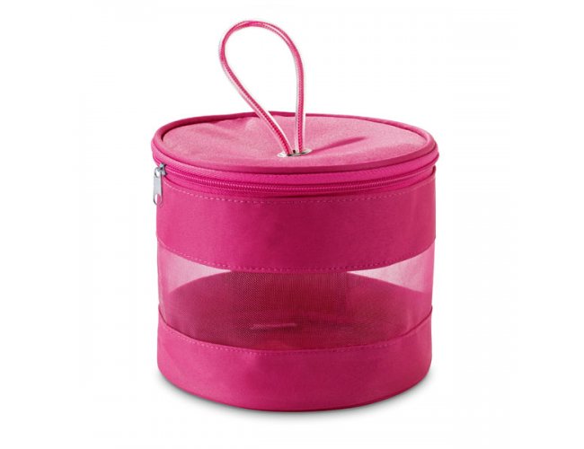Bolsa de cosméticos. Microfibra e tela. ø155 x 145 mm