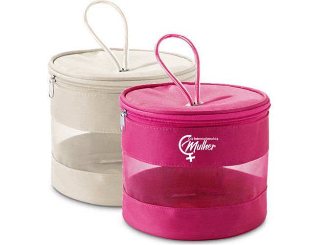 Bolsa de cosméticos. Microfibra e tela. ø155 x 145 mm