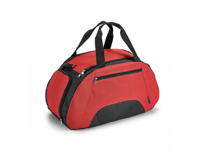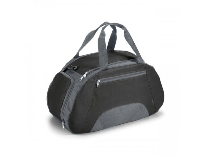 Bolsa esportiva. 600D. Divisória interior e fundo com placa semi-rígida. Bolso frontal e bolso lateral para calçado, ambos com zíper. Alça de ombro ajustável. 520 x 300 x 255 mm