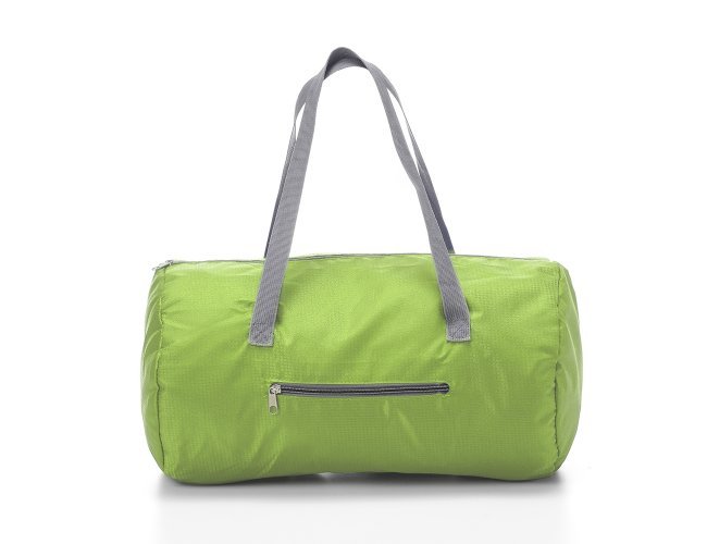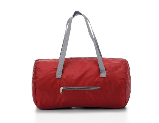 Bolsa impermeável esportiva com capacidade de 23 litros, contém bolso frontal e alças para transporte.