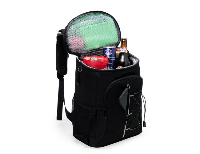 Mais que uma bolsa térmica, ela possui capacidade de 32 litros e alças que permitem carregá-la nas costas. Feita em oxford, é resistente à água e conta com quatro compartimentos: um com revestimento térmico em PEVA atóxico e costura soldada antivazamento, perfeito para manter os alimentos na temperatura ideal ou armazenar gelo, deixando as bebidas sempre geladinhas; outro para frutas, iogurtes e saladas; e dois na parte frontal com zíper, sendo um deles com faixa refletiva e elástico ajustável. Nas laterais, bolsos de tela oferecem fácil acesso a garrafas e outros itens. Para completar, inclui um chaveiro abridor de garrafas, ideal para facilitar ainda mais o momento de lazer.