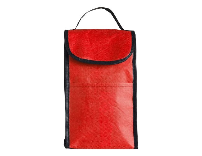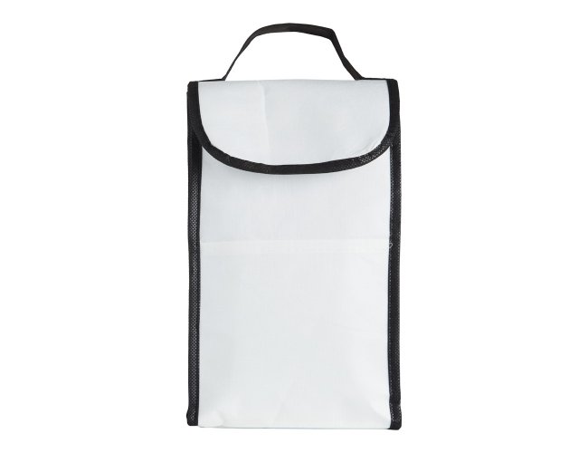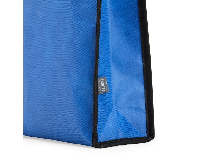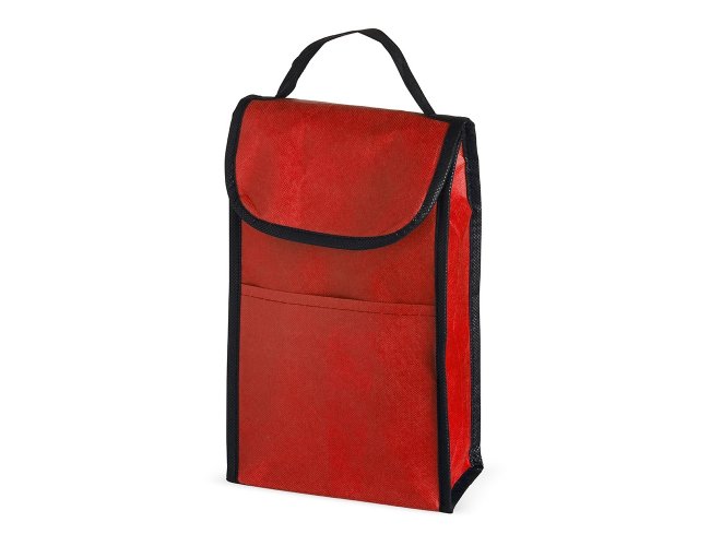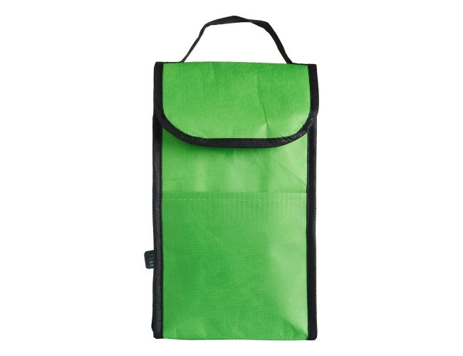 Bolsa térmica de rPET com capacidade de 4 litros com bolso frontal. Feita a partir de materiais recicláveis.