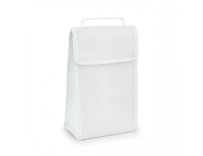 Bolsa térmica dobrável. Non-woven: 80 g/m². Fecha com velcro. Fornecida desdobrada. Capacidade até 3 litros. Food grade.
