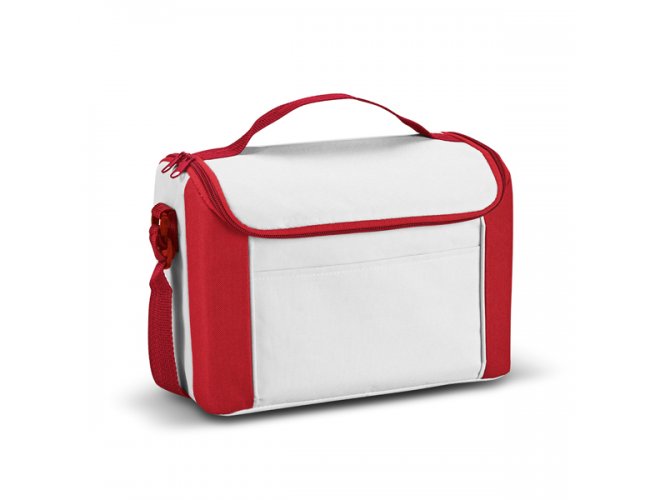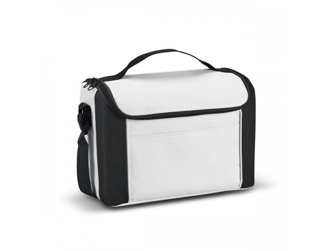 Bolsa térmica. 600D. Com alça ajustável em webbing e bolso frontal. Capacidade até 8 L. Food grade. 270 x 200 x 160 mm