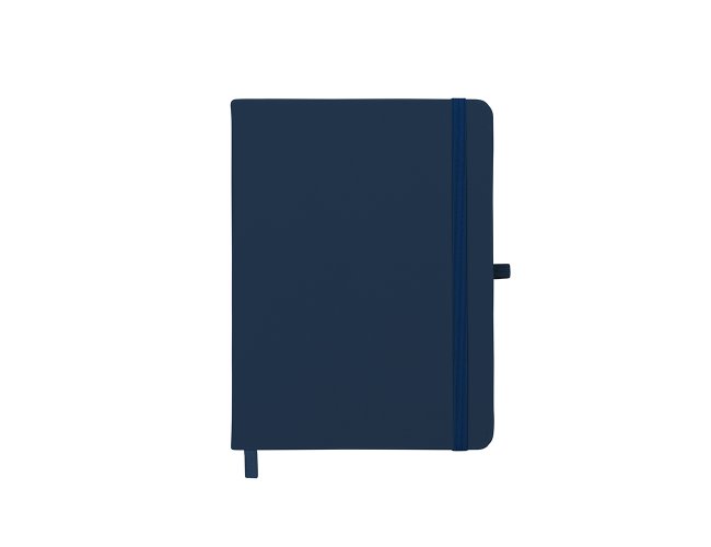 Caderneta emborrachada com porta caneta em nylon, marcador de página em cetim e fita elástica para lacre. Contém aproximadamente 80 folhas pardas sem pauta.