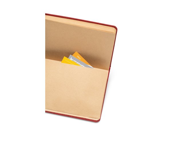 Contém 192 folhas pautadas em papel cor marfim proveniente de gestão florestal sustentável, fita separadora, elástico e bolso em papel na parte traseira da capa.