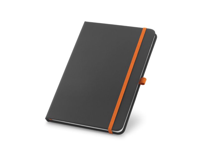 Caderno A6 com capa dura em c. sintético e 80 folhas pautadas. 90 x 140 mm.