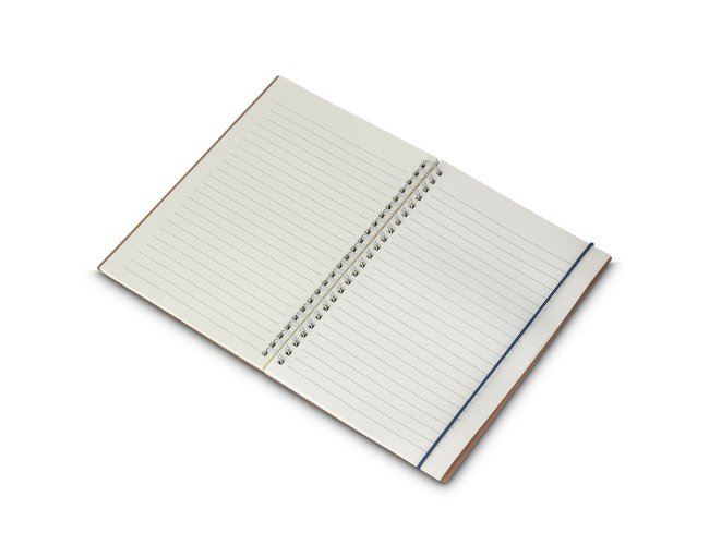 Caderno de anotações 21x15cm, capa em papel 100% reciclado com elástico, contendo: