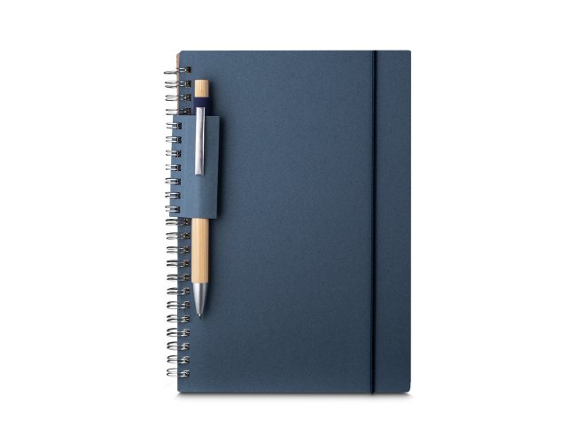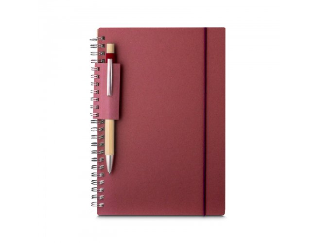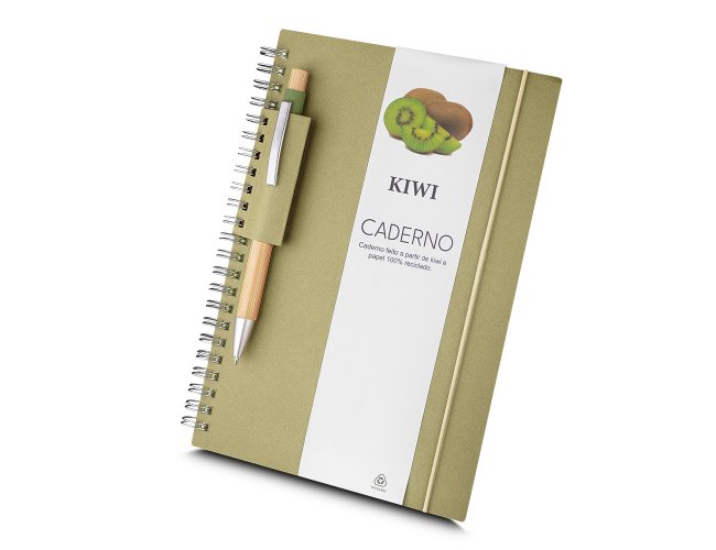 Caderno de anotações 21x15cm, capa em papel 100% reciclado com elástico, contendo: