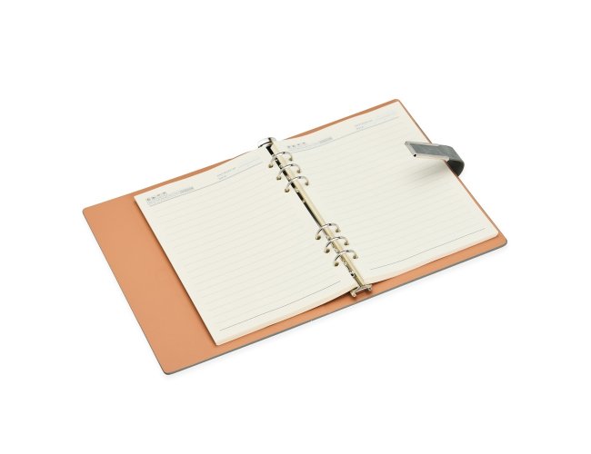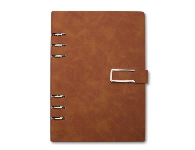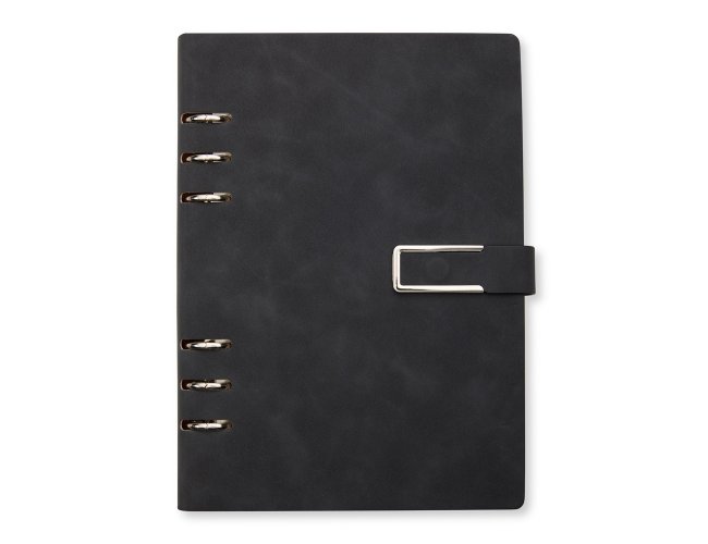 Organize todas as anotações de forma prática com o nosso caderno fichário em PU. Com um design super elegante, ele tem capa dura no formato A5 e um fechamento de fivela imantado que protege as 119 folhas em papel marfim. Os seis anéis permitem retirar e reorganizar as folhas sempre que precisarem, deixando tudo do seu jeito. E para completar, a primeira folha traz um espaço especial para dados pessoais. Esse caderno fichário é a escolha perfeita para manter tudo organizado e com muita sofisticação.