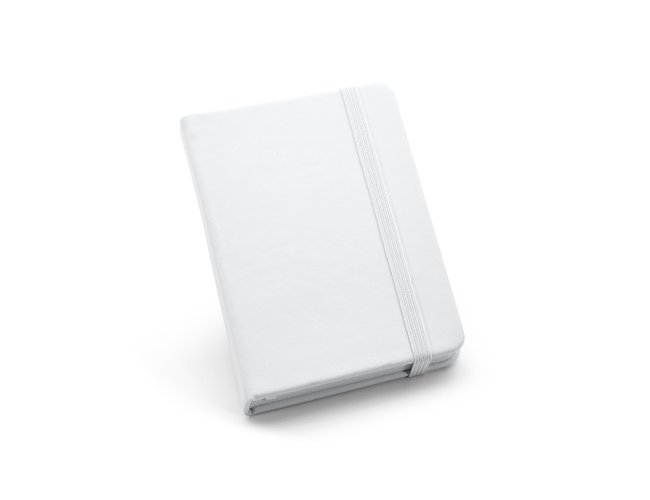 Caderno de bolso com 80 folhas não pautadas, capa dura em c. sintético, fita separadora e elástico. 90 x 140 mm
