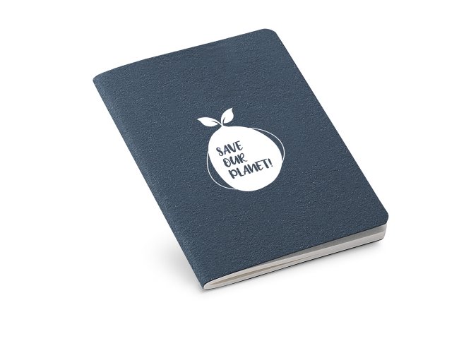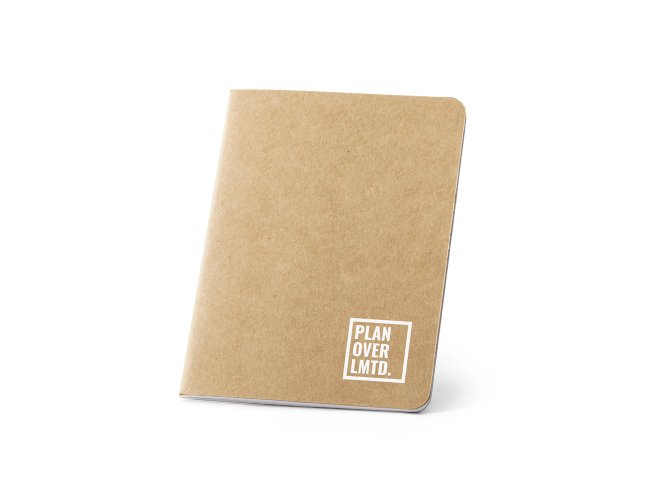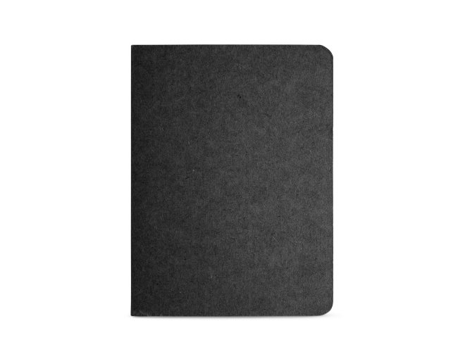 Caderno B7 com 30 folhas não pautadas de papel reciclado e capa em cartão. 93 x 125 mm
