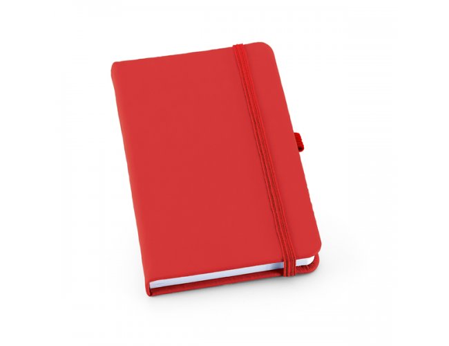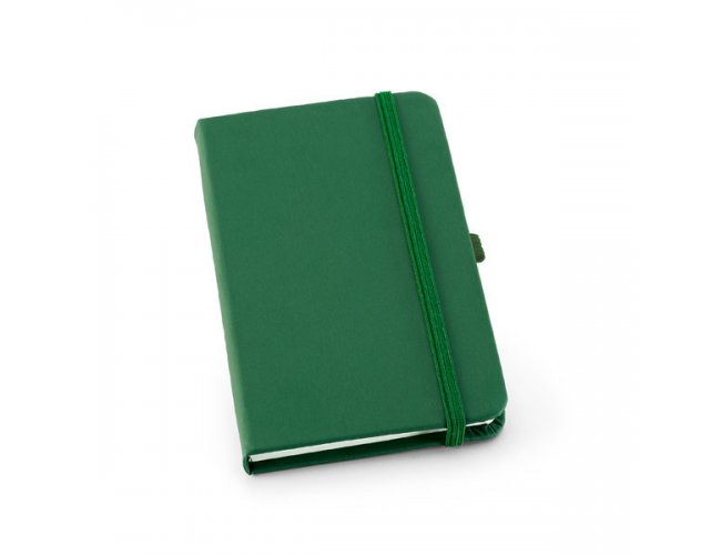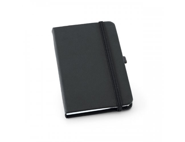 Caderno capa dura. C. sintético. Com porta esferográfica e 80 folhas não pautadas. 140 x 210 mm