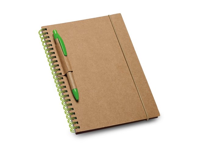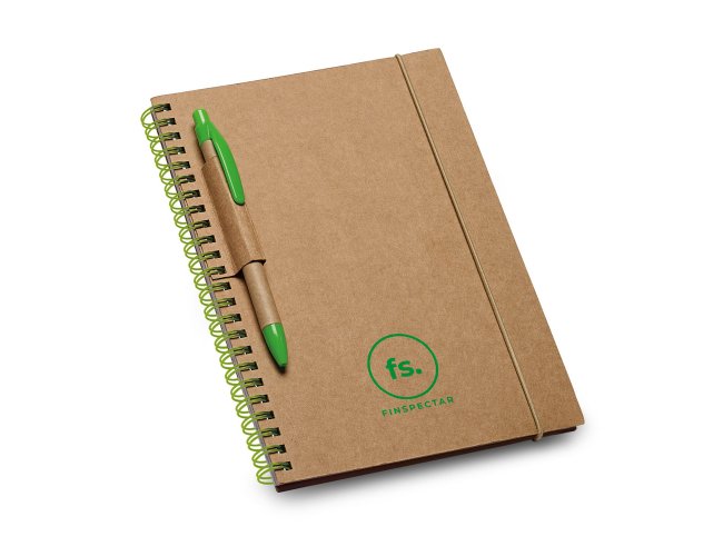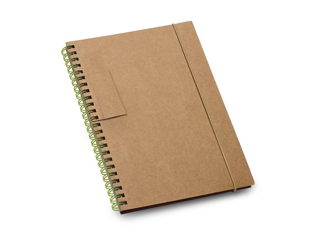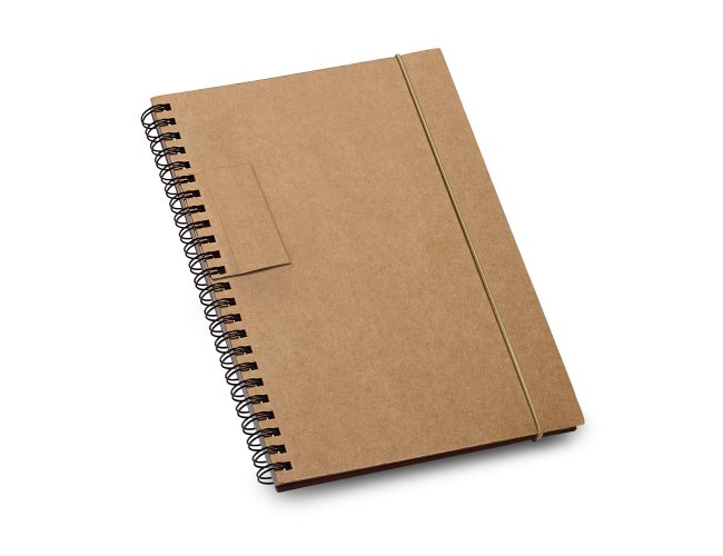 Caderno B6 espiral com 60 folhas pautadas de papel reciclado e capa dura em cartão com suporte para esferográfica (não inclusa). 140 x 180 mm