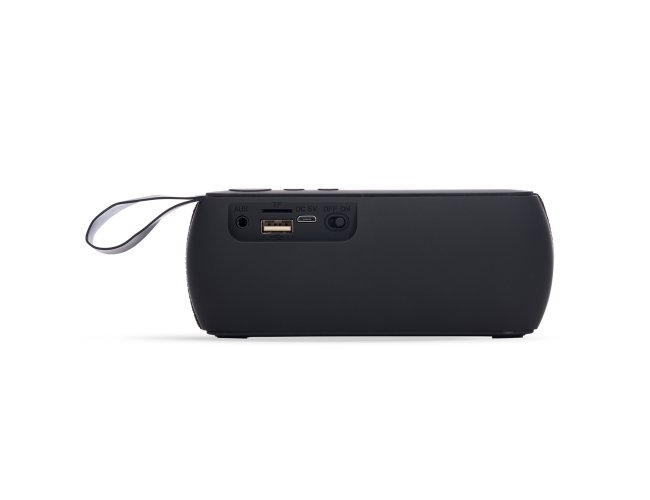 Caixa de som bluetooth multifunções. Material emborrachado com alça lateral, tela de proteção dos falantes em tecido, parte inferior com borrachas anti-deslizantes. Possui os botões de Play/Pause e Modo; Aumentar e diminuir volume/avançar e retroceder faixas; Entrada auxiliar P2; Entrada TF (cartão MicroSD); Entrada USB; Microfone; Entrada DC 5V e botão para ligar e desligar. Funções: ►||/M: ao segurar este botão ele alterna entre os modos bluetooth, USB(pen drive), TF(cartão MicroSD), rádio (neste modo é necessário o cabo como antena na entrada DC 5V, pressionar este botão uma única vez no modo rádio para iniciar a sintonização automática) para e entrada de áudio auxiliar P2(pode ser utilizada no computador); Para atender uma chamada basta pressionar o botão quando conectada via bluetooth, também é utilizado com play/pause ao ser pressionado. ►►|/+: ao segurá-lo irá aumentar o volume e ao pressionar irá avançar a faixa. -|◄◄: ao segurá-lo irá diminuir o volume e ao pressionar irá retroceder a faixa. Bluetooth V 4.2; Alcance 15 metros; Voltagem DC 5V; Carga da bateria de 2 à 3 horas aproximadamente; Falante 4Ω3W 45mm; S/N >95db; Frequência de resposta 280HZ-16KHZ; Bateria 1200mA. Acompanha cabo USB e cabo Auxiliar P2.