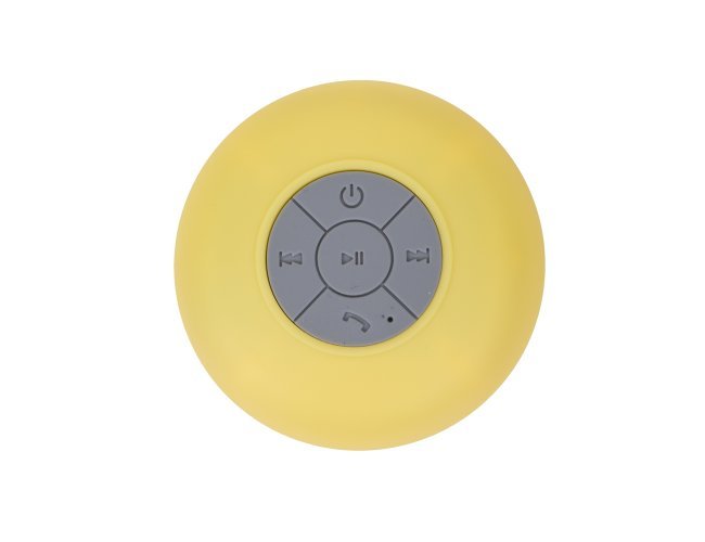 Caixa de som à prova dágua emborrachada com ventosa(pode ser removida). Versão do bluetooth 3.0/EDR, alcance de 10 metros, auto falante de 45MM, frequência 2.4G Hz, fonte de energia DC5V/100-120 mA, bateria lithium 3.7V 400mAh, carga necessária de aproximadamente 2 horas e dura cerca de 5 horas ligada. Para carregar basta conectar ao usb ou energia(necessário ter adaptador) e uma luz vermelha irá acender sobre o botão on/off, quando carregada completa a luz se apagará. Para ligar basta segurar o botão on/off em torno de 6 segundos e uma luz azul irá acender sobre o botão, para trocar músicas apertar os botões voltar/avançar(que também serve para aumentar o volume, basta segurar o botão). Possui play/pause no centro e botão com desenho de telefone deve ser apertado para atender ligações. Compátivel com Iphone, Ipad, Ipod, aparelhos de celular e tablets. Acompanha cabo.