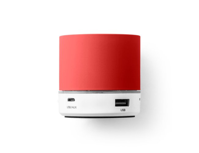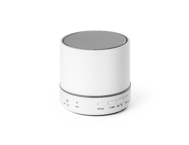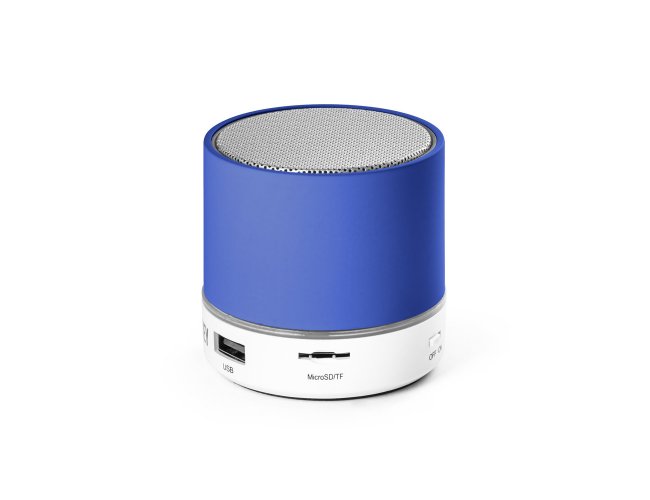 Caixa de som com microfone em ABS e acabamento emborrachado. Transmissão por bluetooth e leitor de cartões TF. Com 3W/4Ω e autonomia até 2h. Função para atender chamadas, controle de volume e conexão à playlist do dispositivo móvel. Incluso cabo USB / micro USB para carregar. ø59 x 55 mm.