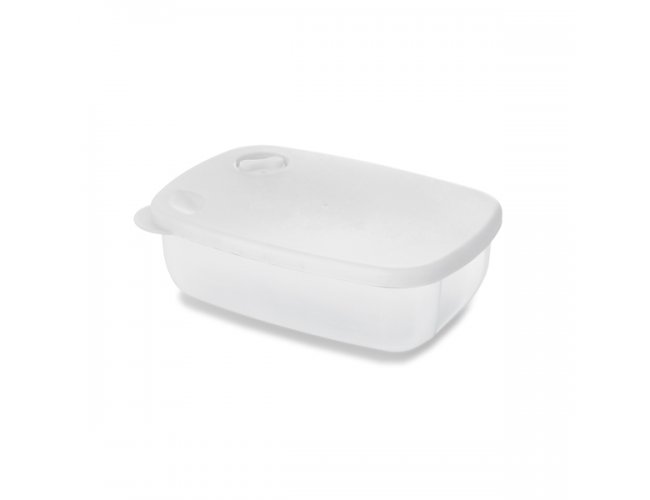 Caixa Hermética 93899 Personalizada para Brindes, com a sua logomarca. PP. Capacidade: 800 ml. Apto para microondas. Dimensões: 180 x 125 x 58 mm.
