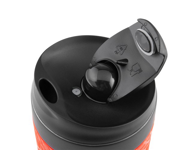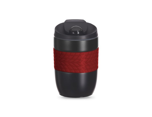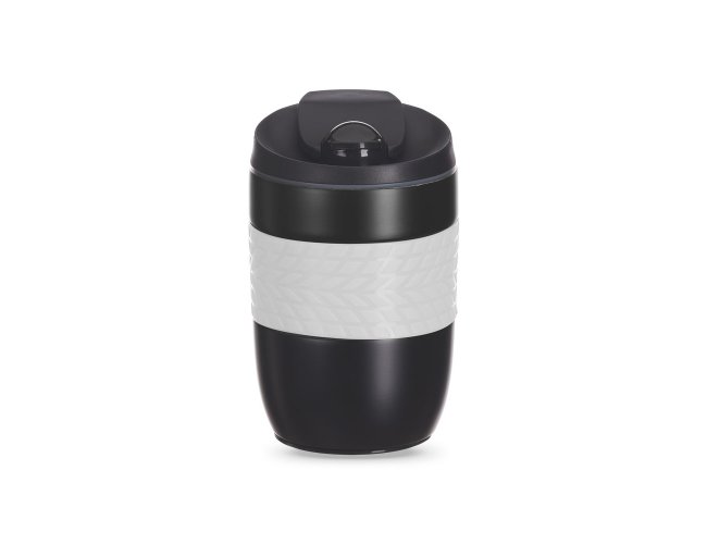 Caneca antiqueda em aço inox parede dupla de 260ml, conserva temperatura quente ou fria, pegador em silicone e bico com tampa. Na parte inferior da caneca existe uma ventosa que por sucção previne possiveis quedas causadas por batidas, choques e colisões.