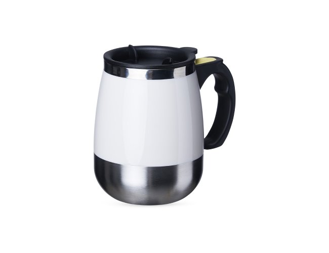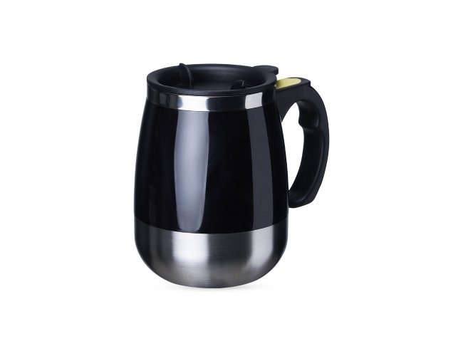 Descrição: Caneca de inox com misturador de bebida, feita em parede dupla com capacidade de 350ml. Contém tampa plástica com bocal e trava de segurança. Para o funcionamento, utiliza-se duas pilhas AAA (não acompanha).