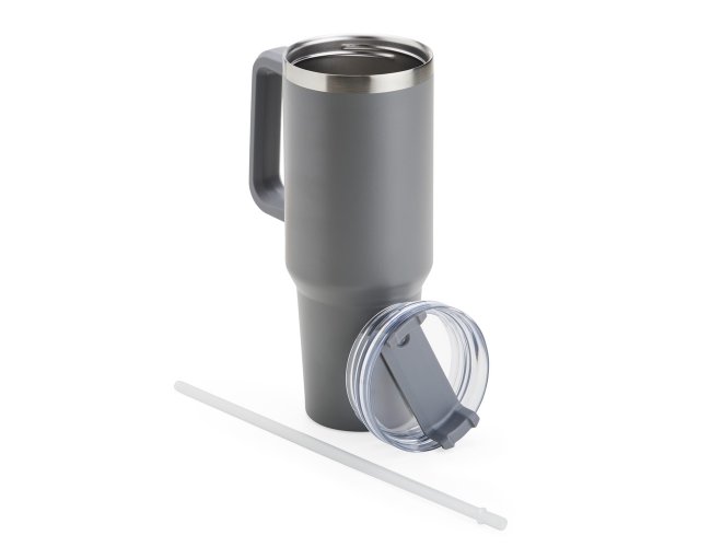 Caneca térmica com capacidade de 1,2 litros feita em inox 304 com parede dupla, contém tampa acrílica rosqueável com acesso para canudo e pegador plástico. Acompanha canudo plástico.