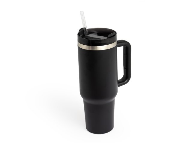 Caneca térmica com capacidade de 1,2 litros feita em inox 304 com parede dupla, contém tampa acrílica rosqueável com acesso para canudo e pegador plástico com aderência emborrachada. Acompanha canudo plástico.