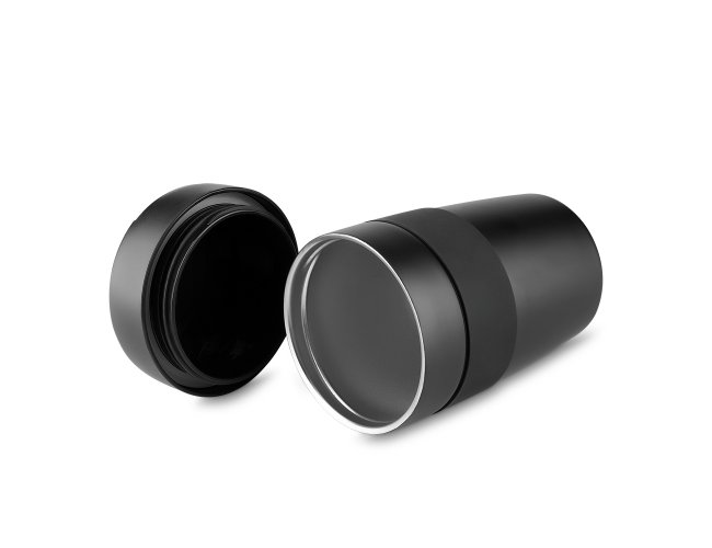 Caneca em aço inox com parede dupla isolada a vácuo com capacidade de até 350ml. Conserva temperatura quente ou fria, pegador em silicone, tampa com rosca e anel de silicone para vedação.