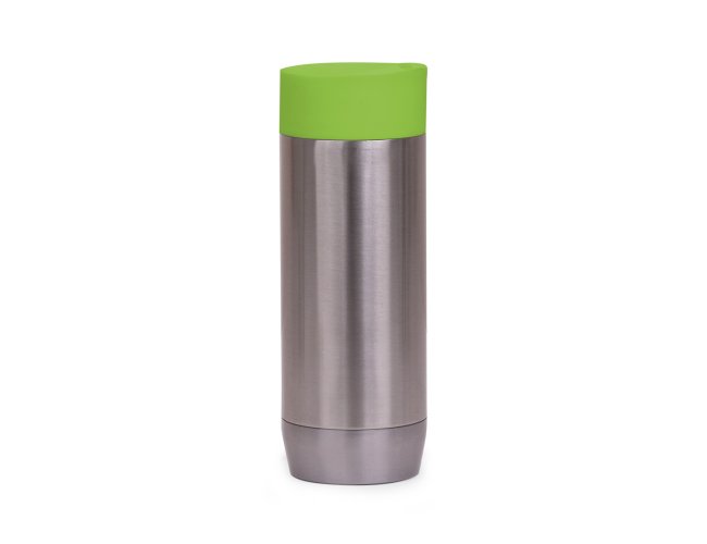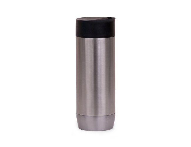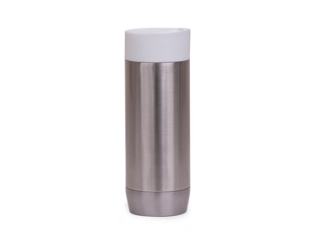 Caneca em aço inox com parede dupla isolada a vácuo com capacidade de até 450ml.