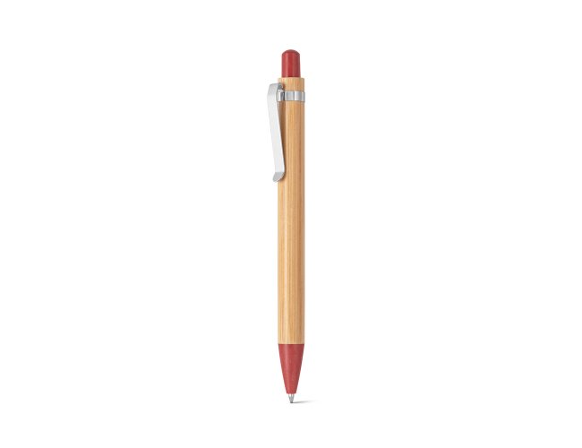 Esferográfica em bambu e clipe em metal. Os elementos coloridos são em fibra de trigo e ABS. Até 1,5 km de escrita. ø11x142 mm