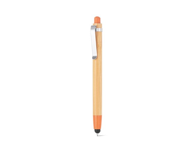Esferográfica em bambu com ponteira touch e clipe em metal. Os elementos coloridos são em fibra de trigo e ABS. Até 1,5 km de escrita. ø11 x 139 mm