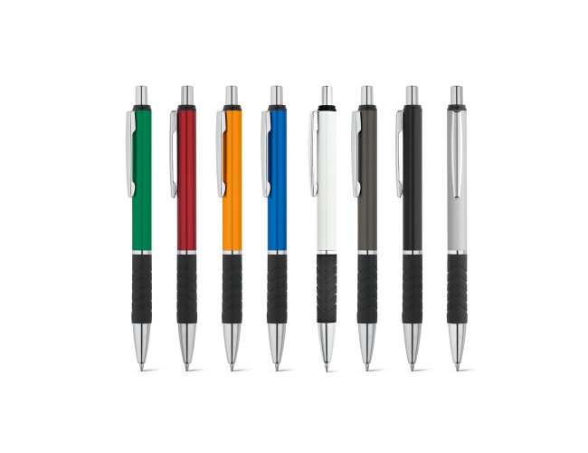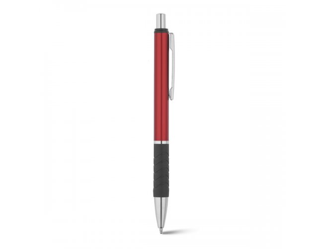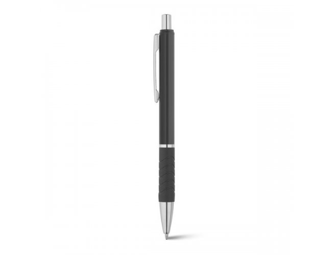 Esferográfica em alumínio com clipe de metal e grip. Até 1,5 km de escrita. ø10 x 136 mm