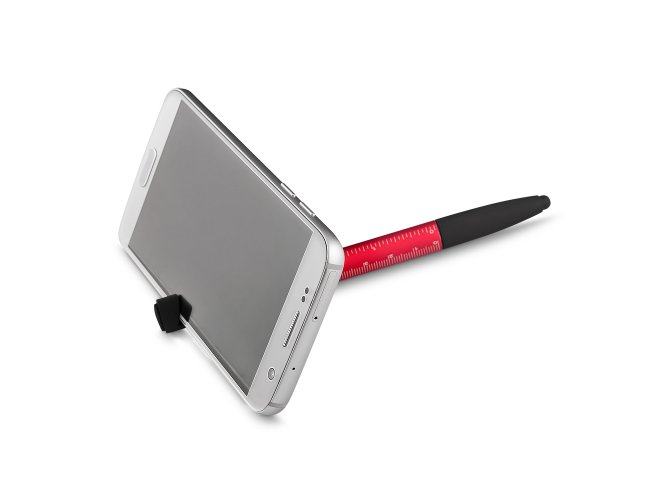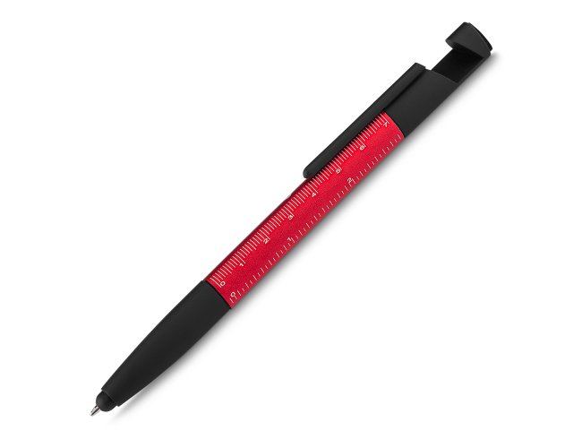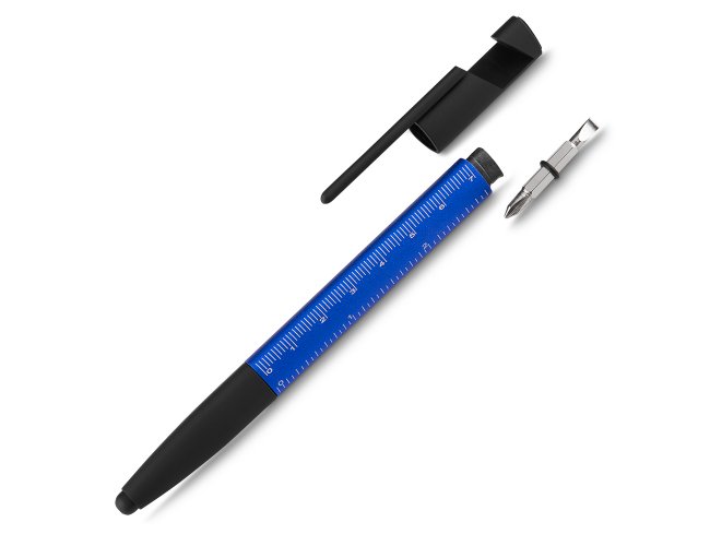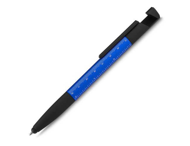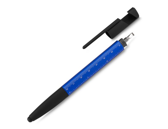 Caneta esferográfica em metal com ponta touch escrita em azul Ferramentas, apoio para smartphone Limpa tela e régua