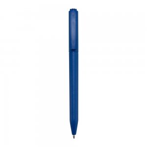 Caneta plástica inteira colorida com pintura fosca. Anel central e acionador em relevo. Aciona por clique e para destravar basta apertar a parte inferior do clip.