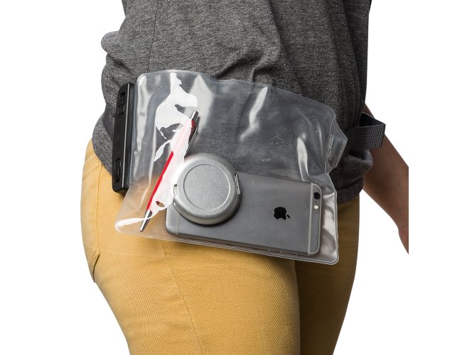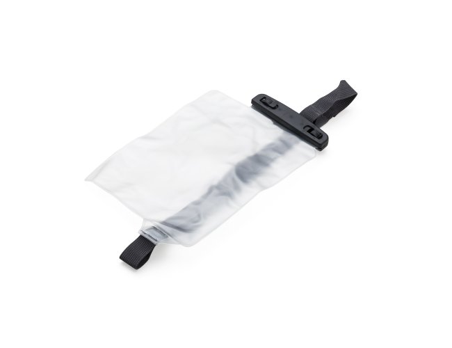 Capa a Prova D'Água Universal 13139 Impermeável para objetos diversos, com alça de tamanho regulável , fabricado em PVC. Tamanho total aproximado (CxD): 28,5 cm x 17,5 cm x 10 cm. Peso aproximado (g): 77
