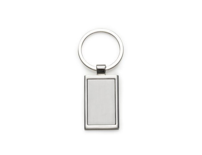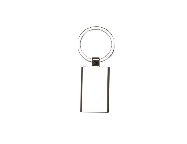 Chaveiro de metal retangular com chapa central, verso liso.