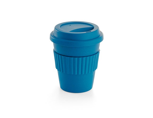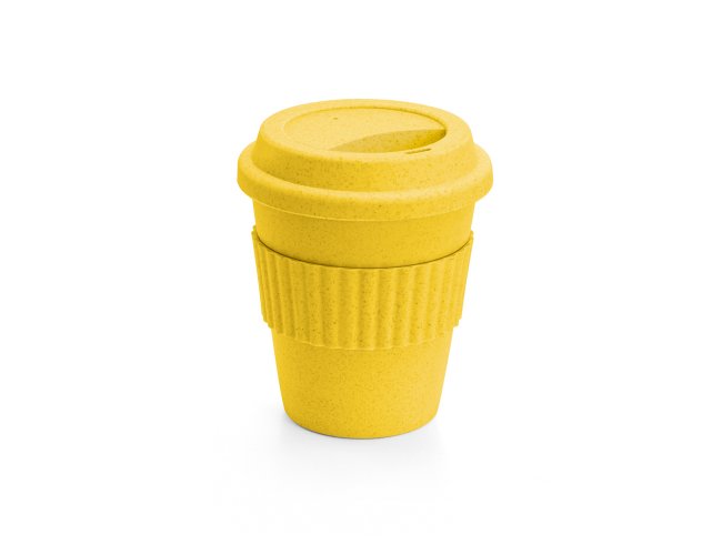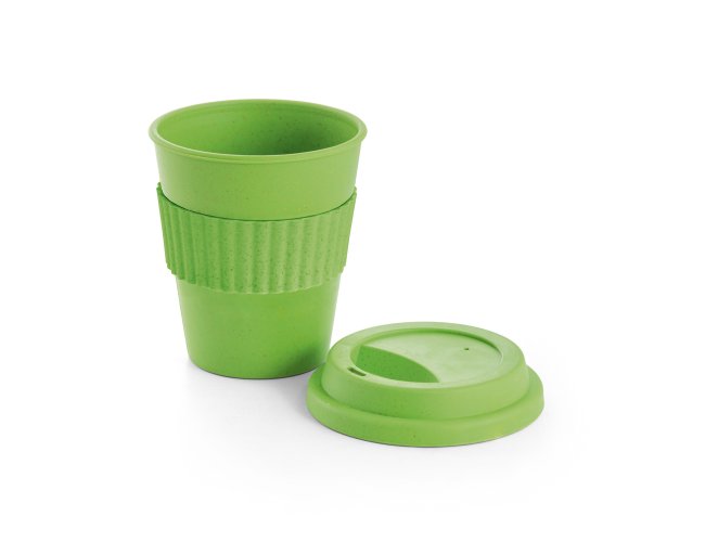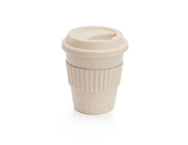 Copo de viagem. Fibra de bambu e PP. Capacidade: 380 ml. Food grade. Retirar tampa antes de colocar no micro-ondas. Dimensões: 95 x 95 x 114 mm.