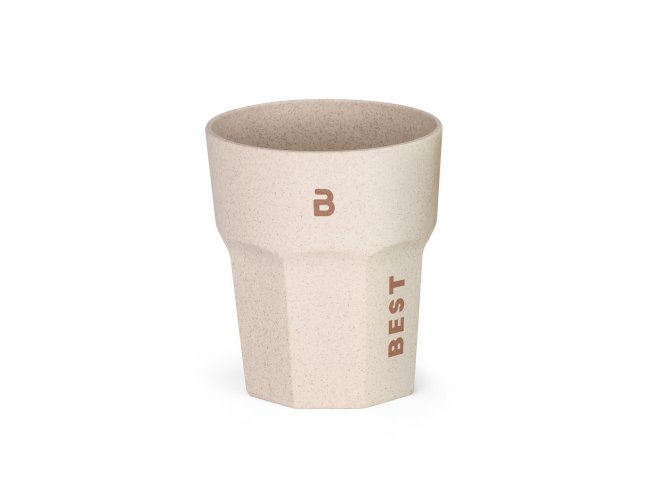 Copo em fibra de arroz (50%) e PP (50%) com acabamento matt. Capacidade até 400 ml. Food grade. ø88 x 102 mm