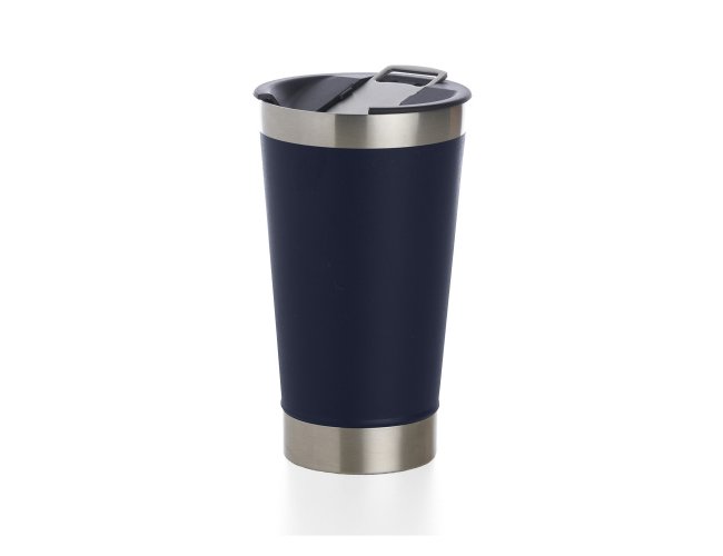 Copo térmico de inox com acabamento liso e capacidade 500ml. Material livre de BPA. Contém tampa com abridor.