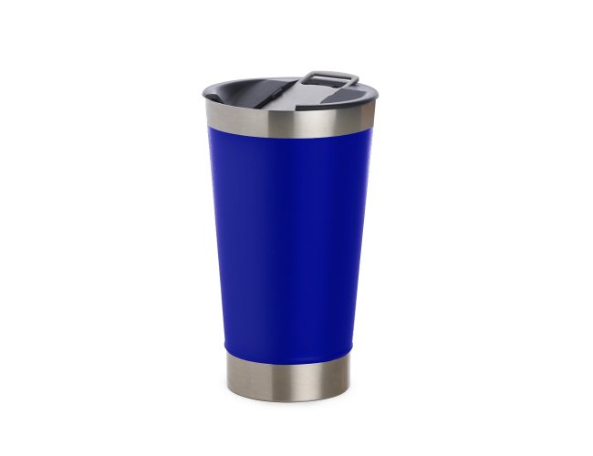 Copo térmico de inox com acabamento liso e capacidade 500ml. Material livre de BPA. Contém tampa com abridor.
