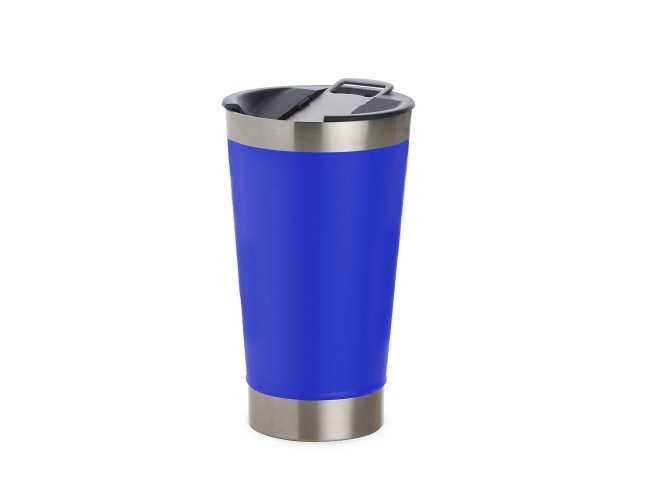 Copo térmico de inox com acabamento liso e capacidade 500ml. Material livre de BPA. Contém tampa com abridor.