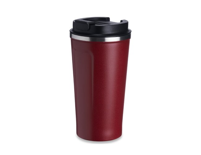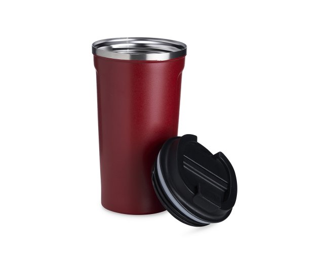 Copo térmico de inox 500ml com parede dupla, parte inferior com borracha antideslizante e tampa rosqueável com abertura de bocal.