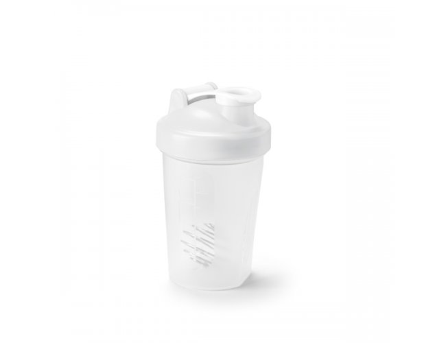 Shaker. PP e HDPE. Com misturadora em aço inox e escala de medição até 400 ml/12 ft oz. Capacidade até 550 ml. Food grade. Caixa branca 94654 vendida opcionalmente. ø93 x 160 mm