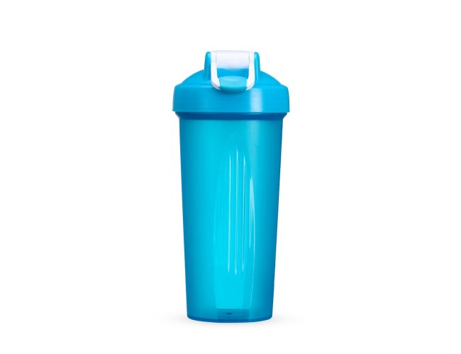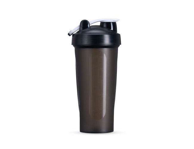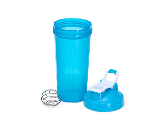 Coqueteleira em polipropileno com capacidade de 700ml, livre de BPA, copo contendo detalhes laterais em relevo e escala de medições em ml e oz. Tampa rosqueável com bocal, trava de segurança e alça para transporte. Acompanha misturador de mola.