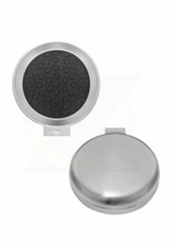 Escova com espelho redonda em plástico resistente. Parte superior plana e parte inferior emborracha com relevo, estando aberta a peça basta empurrar a parte emborrachada(lado de fora) para poder utilizar a escova.