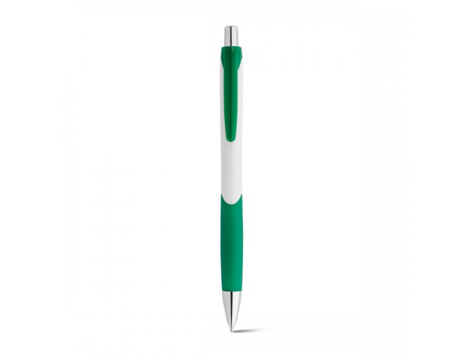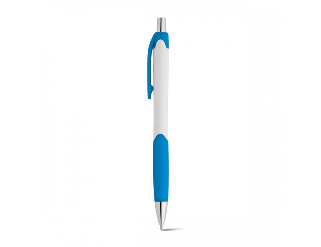 Esferográfica em ABS com grip e acabamento brilhante. Ponteira cromada. Até 1,5 km de escrita. ø11 x 140 mm