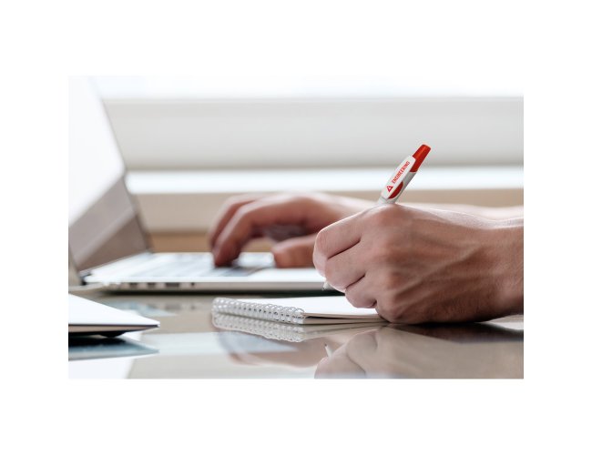 Esferográfica com acabamento brilhante, ponteira frost colorida e tinta Dokumental® até 2km de escrita. ø10 x 135 mm